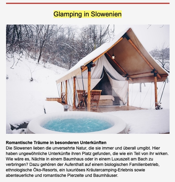 Agency MGM Media Optima d.o.o. , Creative for Media and Sport is the owner of the brand Best Press Story. We create stories through study and research trips and tours for Slovenian and foreign journalists, bloggers and opinion leaders as well as through promotional events in foreign markets and through a network of PR content, prepared for Slovenian and foreign media. Our main objective is to show the best that Slovenia and the region can offer, in cooperation with our partners, who financially support our study tours.